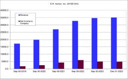 Looking at what might be regarded as one of the most interest rate sensitive areas, housing construction, the response to higher rates has been very muted considering mortgage rates have gone from under 3% to over 7%. Housing starts are slightly up on the level a year ago. House builders do not seem to be suffering a lack of demand in the US and other developed economies. The chart below shows the revenue (in Blue) of DR Horton, the largest home builder in the US, which has grown an average of 17% p.a. over the last four years and while growth has slowed the absolute level has not dropped. The bars on the far right are for the 12 months to 31 December 2023. Profitability has grown even faster at an average of 29% p.a. These results would not suggest that the consumer is stressed.