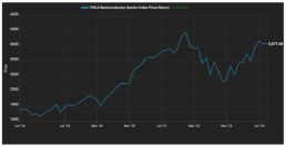 Despite the oversupply and falling prices in chips, the closely watched index of semiconductor suppliers, the Philadelphia Semiconductor Index rose nearly 40% over the year (see the table on the previous page).